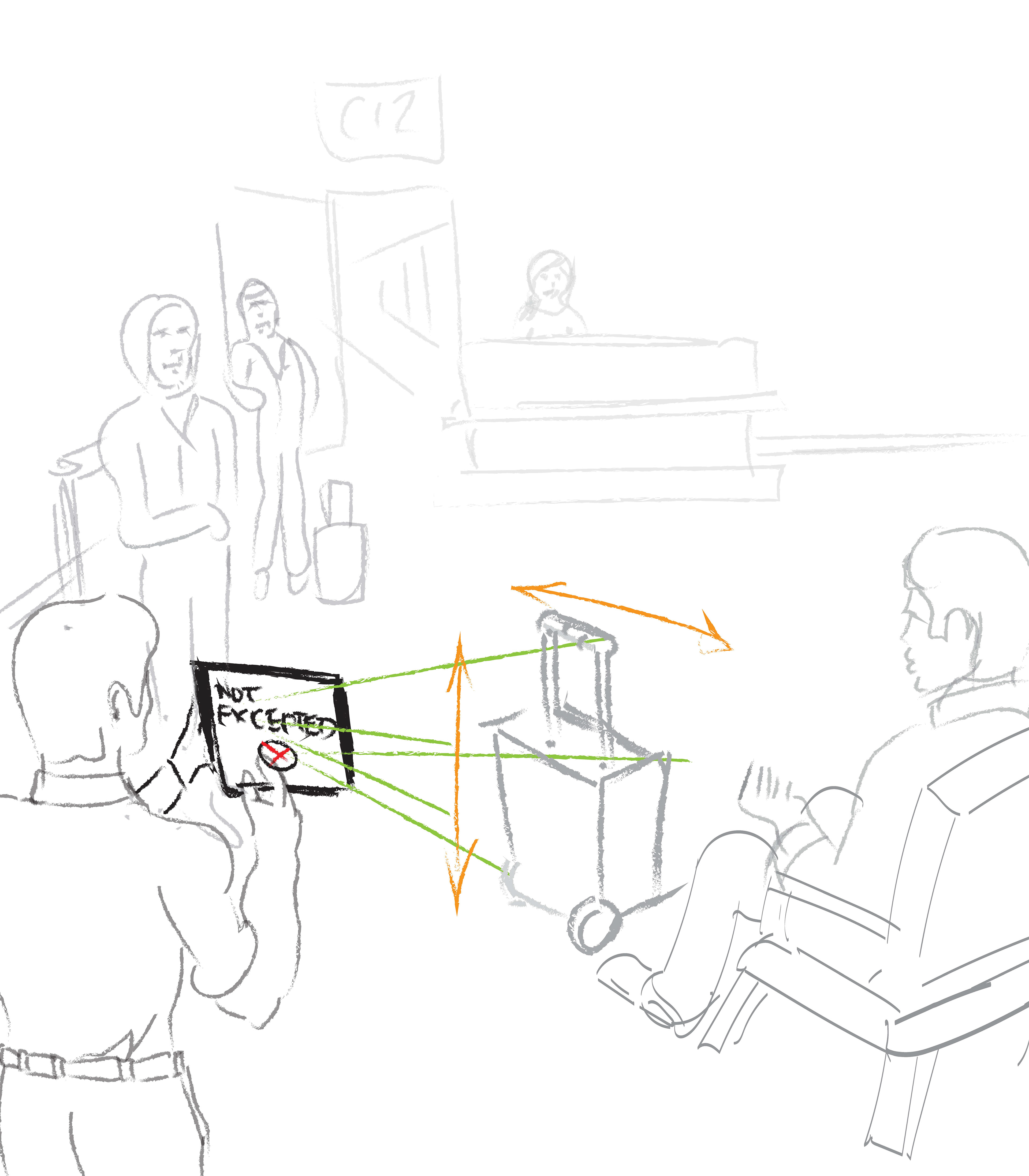 Measuring all luggage at kiosks helps passengers confirm carry-ons will fit in overhead compartments.